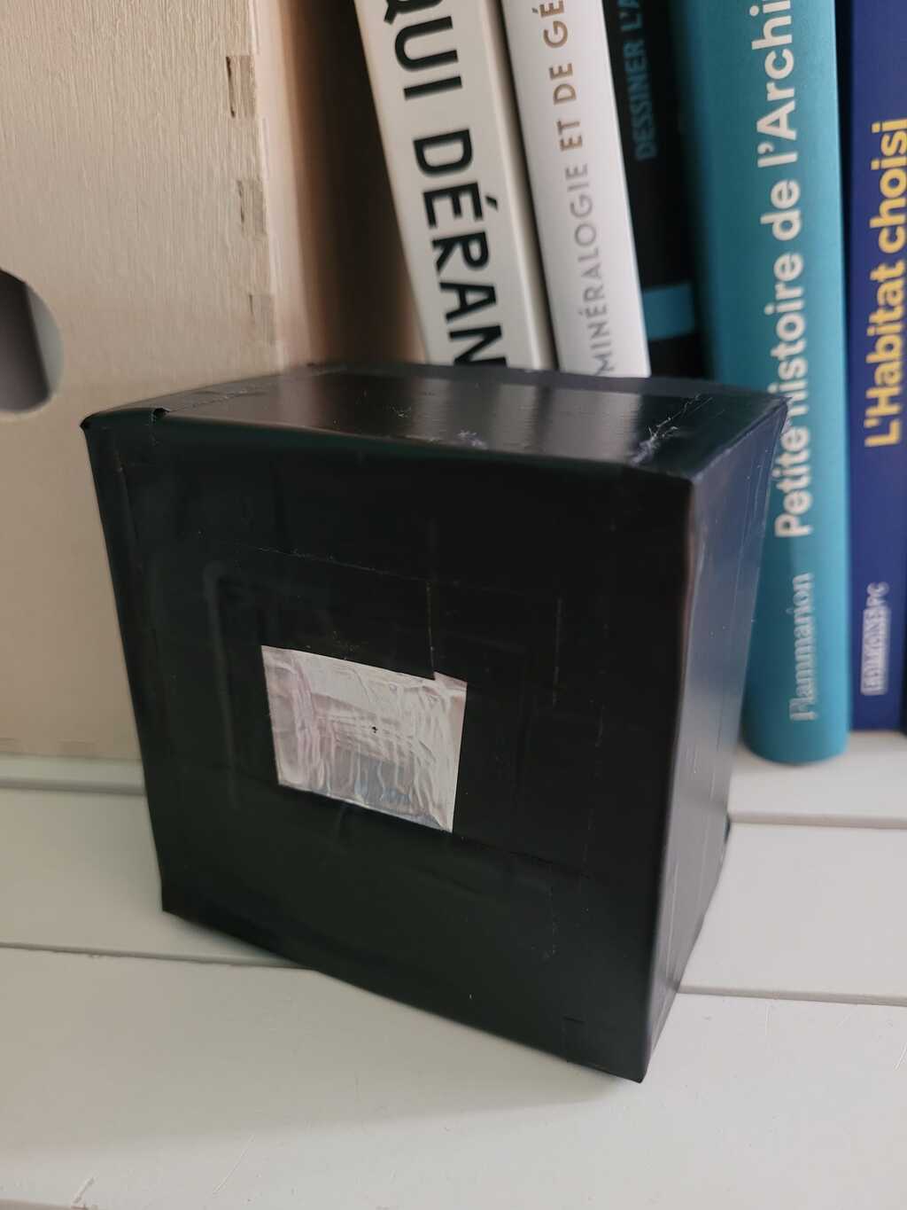 Ce semestre j'ai pu découvrir le sténopé. Le sténopé est une petite boite noire, dans laquelle on vient mettre un papier photo-sensibilisé. Un trou est percé à l'avant de la boite, on le découvre pendant un temps donné pour prendre une photo avant de passer en labo de développement pour sortir la photo en négatif. On peut ensuite tirer des positifs avec un agrandisseur.