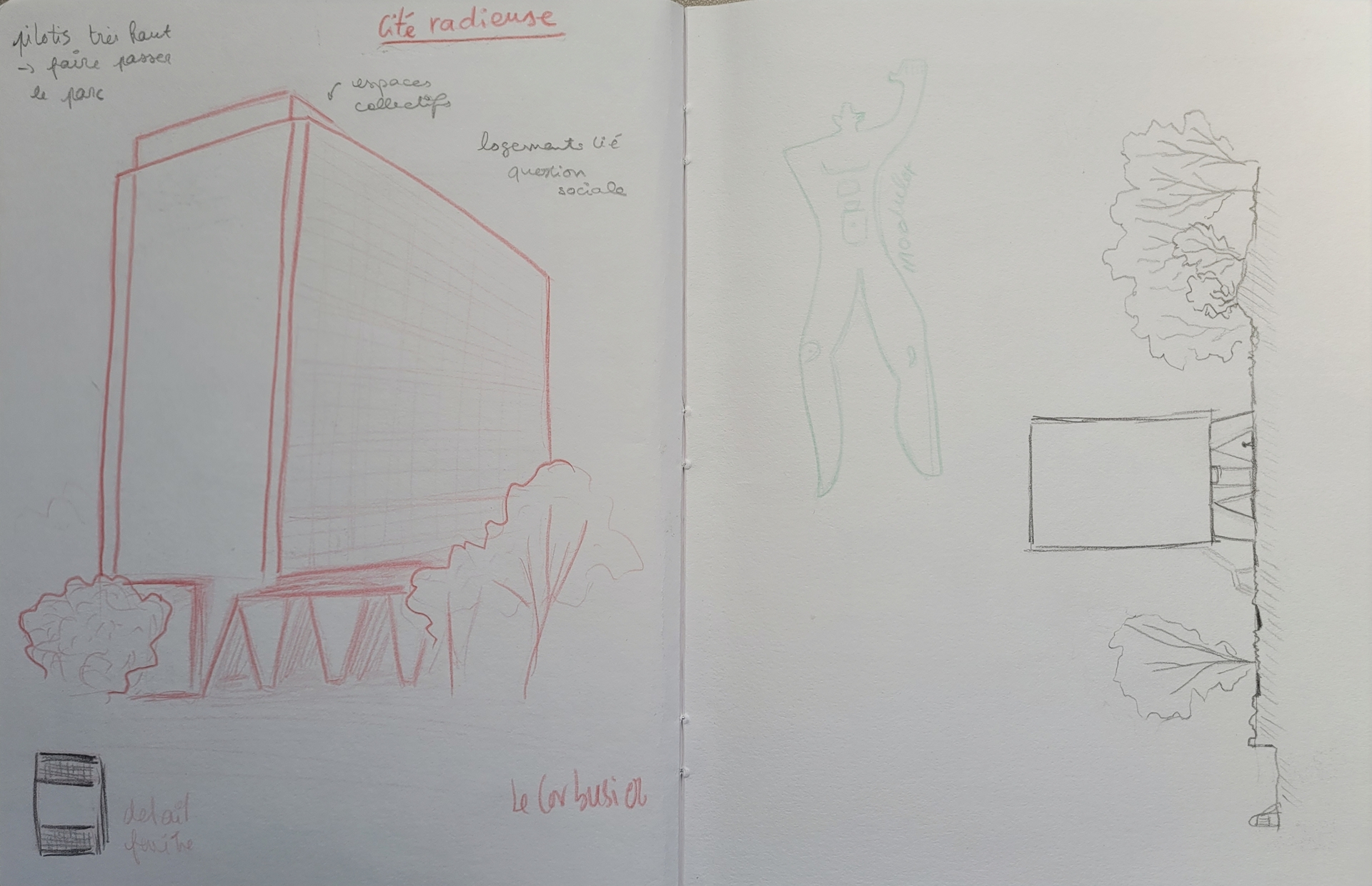 Au mois d’avril, nous avons eu l’opportunité de participer à un voyage d’étude à Nantes. Pendant plusieurs jours, nous avons visité des projets d’architecture et de paysage, dans Nantes ou à Rezé. Chaque visite était enrichie par les interventions de professionnels qui nous apportaient des éclairages sur les partis pris de leurs projets. J'ai beaucoup aimé dessiner Nantes et l'arpenter à la recherche d'idées.